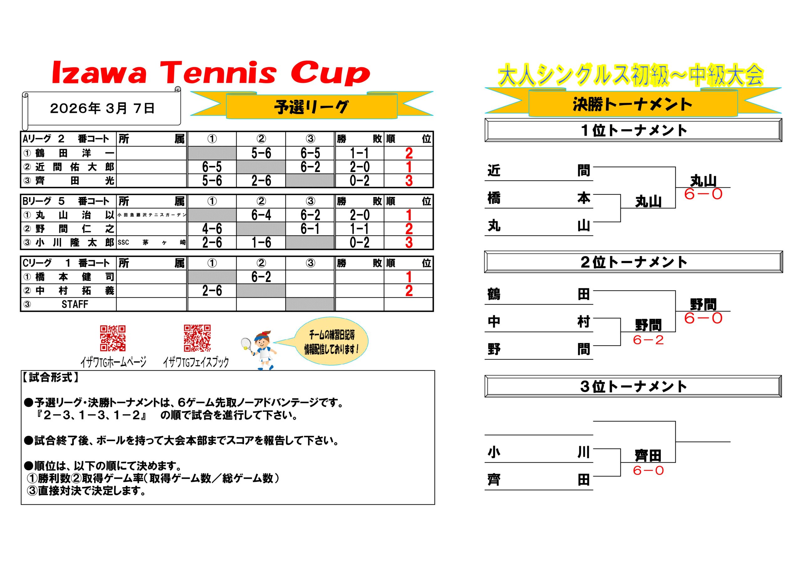 イザワcup大人シングルス大会結果(初級~中級)