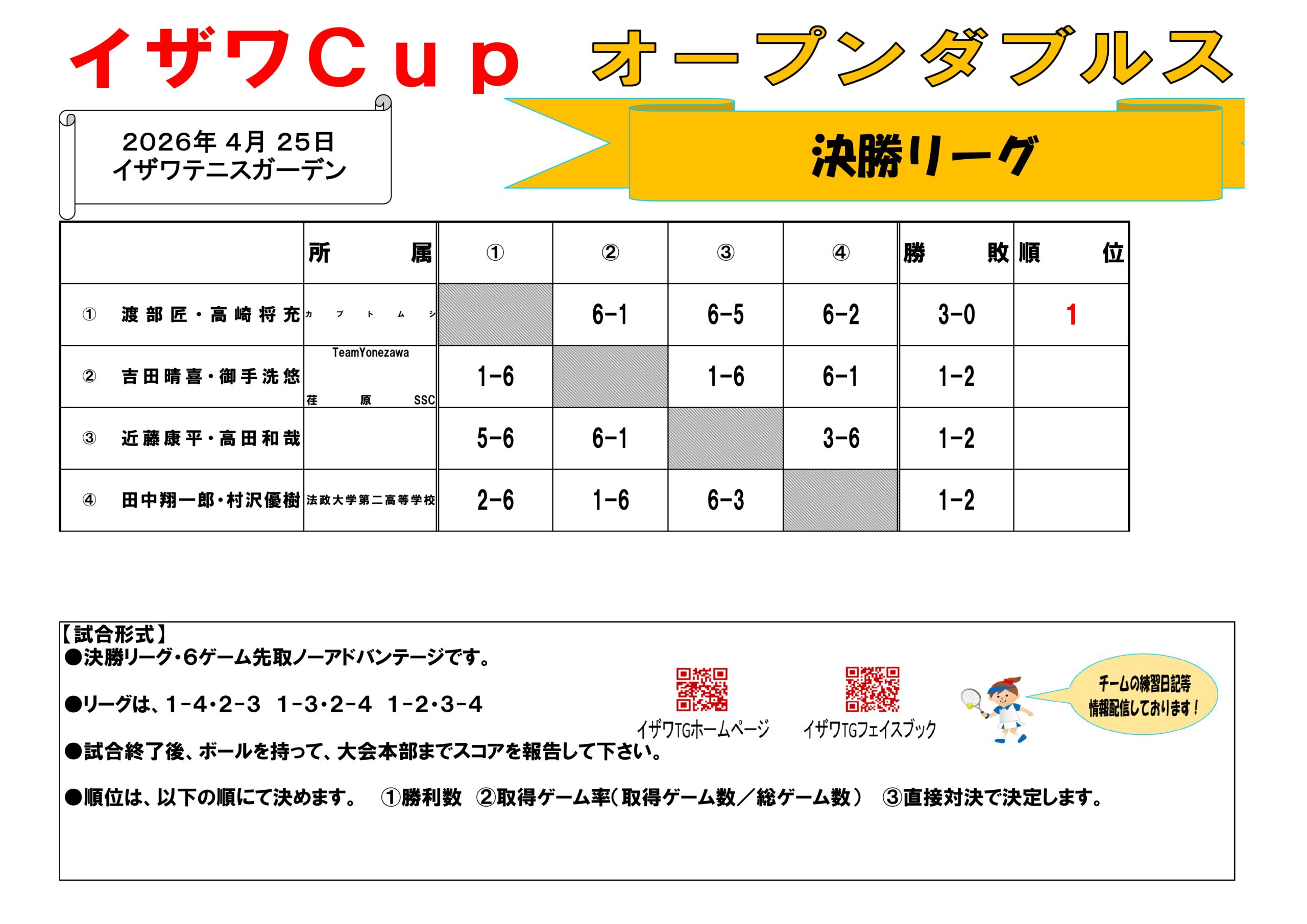 260425 イザワcupオープンダブルス大会結果
